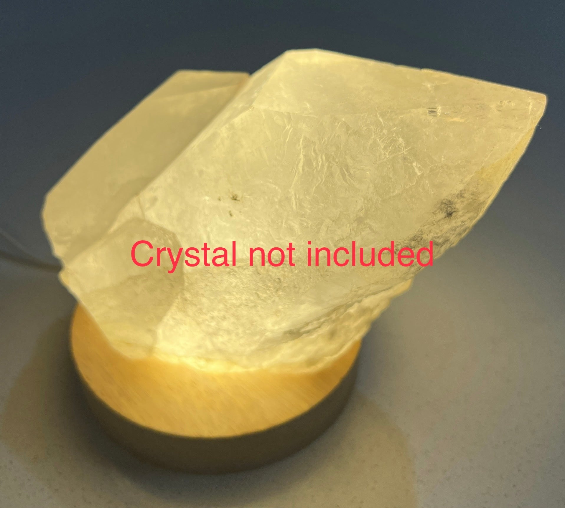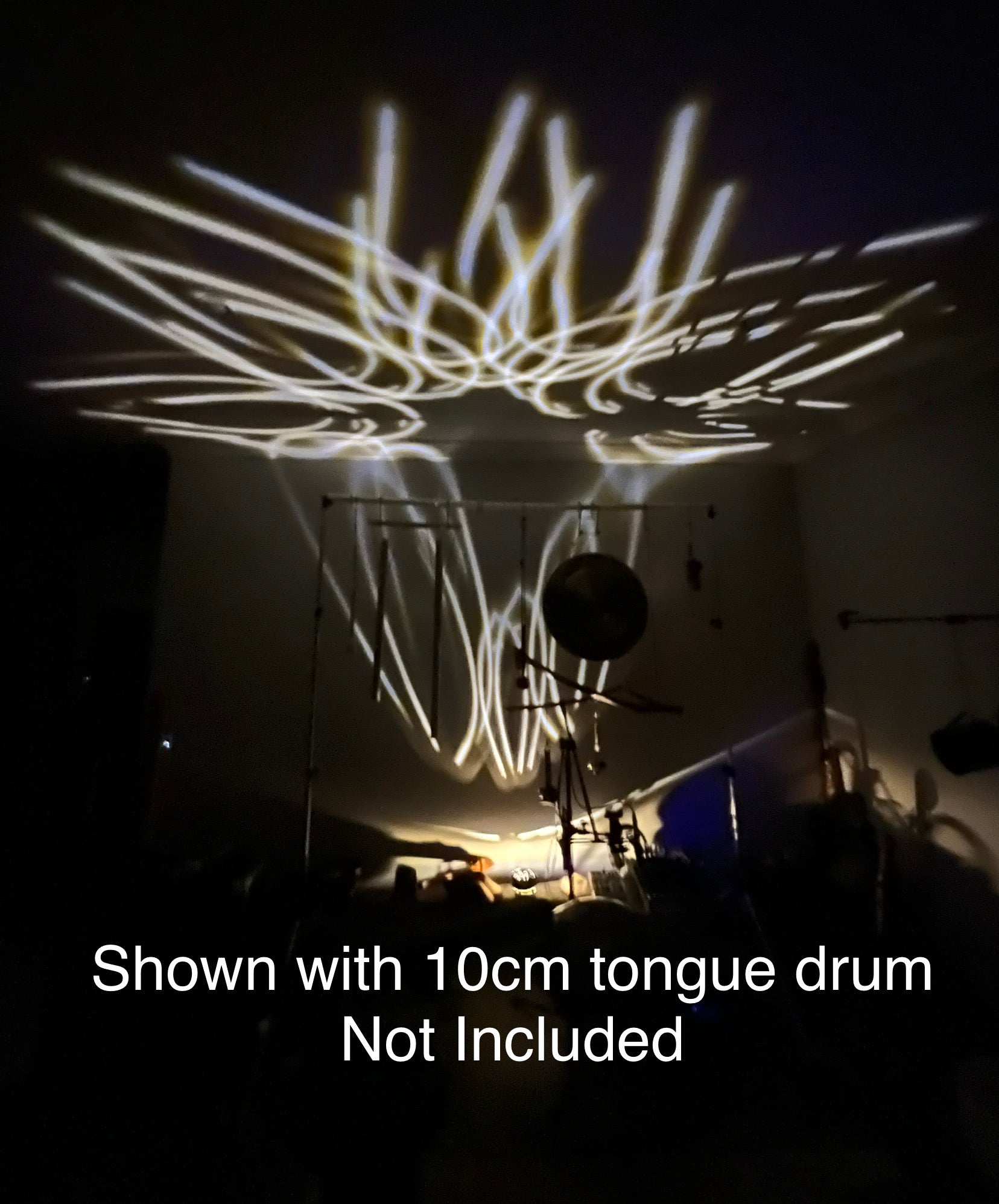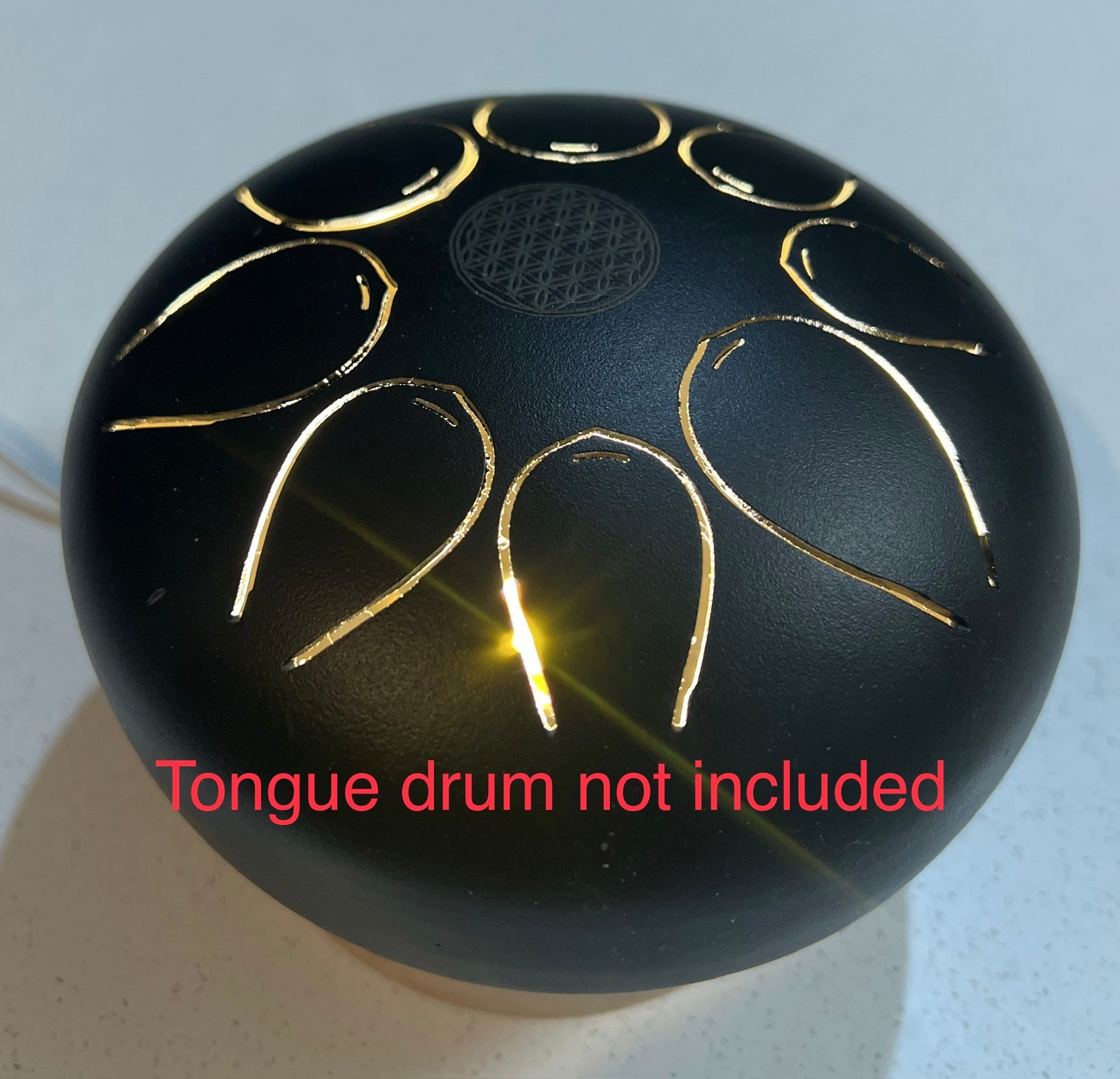 USB powered light ring. Power supply not included. Comes with in line switch. Timber 10cm base with recessed LED lights. Use to illuminate any transparent or translucent objects. Looks amazing with Zen tongue drum. Projects beautiful pattern on roof at night and can make a beautiful night light. Also great for Crystals. Endless uses.